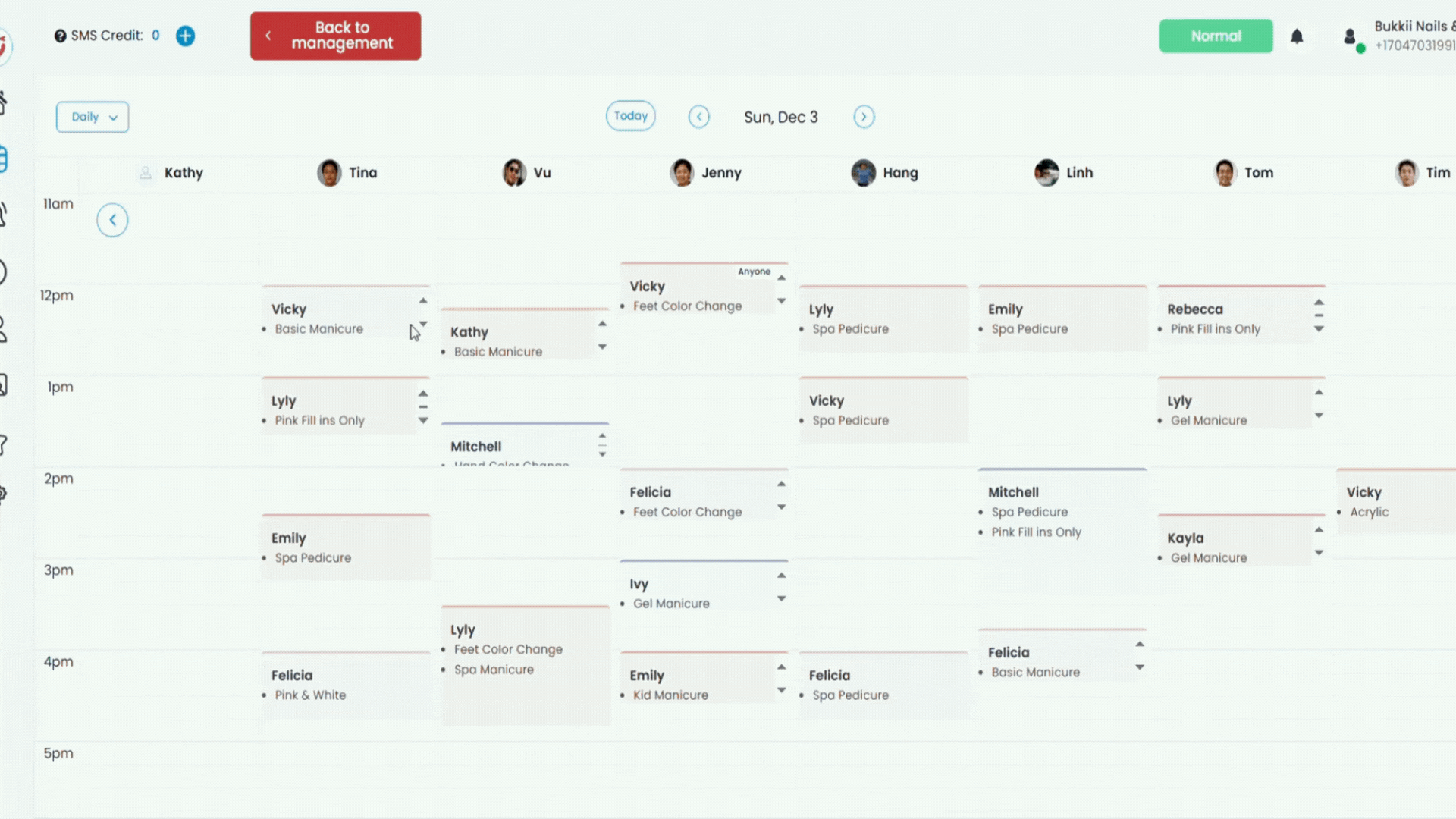 * Each employee has their own profile, allowing you to customize the services each employee can provide, their working hours, break times, and vacation schedules.